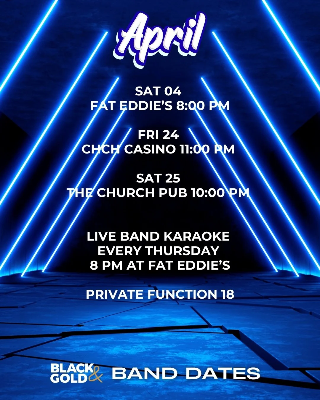 Find out where our Bands, Duos and Soloists are performing each month. For more information check out our bands Social Media Handles at the bottom of this page or find their unique pages within the Menu selection. Follow us today! Click on the handle you want to follow us on and it will take you to our page!